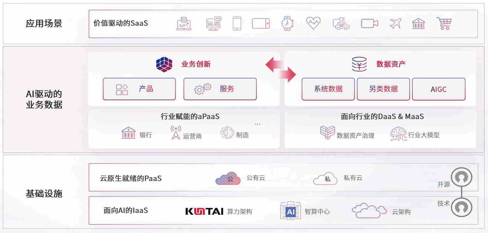 数字时代,,,,围绕企业数字化转型的关键要素,,,,人生就是搏数码开创性的提出数云融合战略和技术体系框架,,,着力在云原生、、数字原生、、、AI原生和信创产业上架构产品和服务能力,,,为处在不同数字化转型阶段的快消零售、、汽车、、、、金融、、医疗、、政企、、教育、、、、运营商等行业客户提供泛在的敏捷IT能力和融合的数据驱动能力,,,构建跨界融合创新的数字业务场景和新业务模式,,助力企业级客户建立面向未来的核心能力和竞争优势,,,全面推动社会的数字化、、、智能化转型升级。。。。